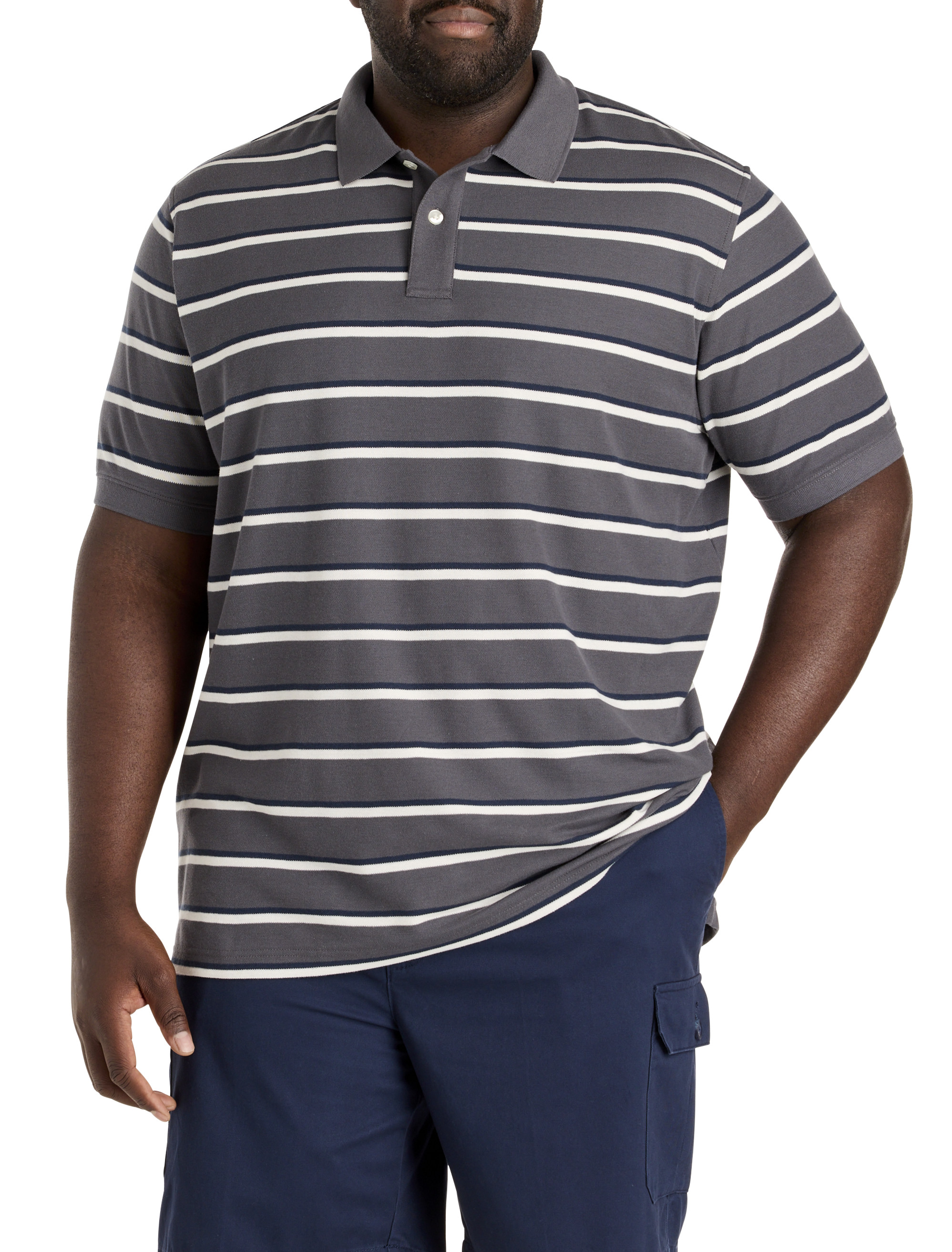 Stripe it rich with this easy-to-wear polo shirt from Harbor Bay. Designed at DXL with precise proportions and an ideal fit for Big + Tall guys, it's lightweight, cool and breathable. It's crafted from a cotton and polyester blend and is just right for everyday wear, allowing you the freedom to move without restriction. Pair it with shorts, jeans or chinos for a complete look.