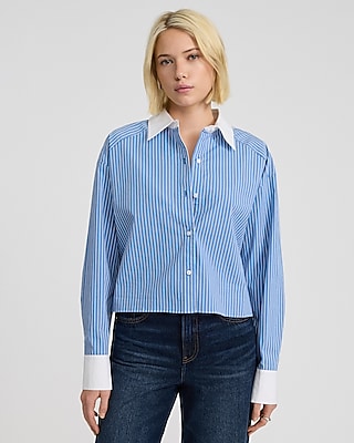Striped Poplin Cropped Boyfriend Shirt in Chattanooga, TN