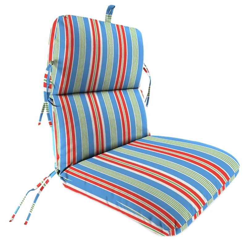 Get ready to soak up the sun this summer with our Striped Rolland Outdoor Chair Cushion. Its vibrant pattern will instantly brighten up your outdoor space! Cushion measures 22L x 5W x 45H in. Crafted of polyester One-piece chair cushion Striped design Hues of blue, red, green, and white Features attached ties to secure cushion in place Stain, mildew, and water resistant UV protection to prevent fading Outdoor safe Care: Spot clean with water and mild soap. This item is available at Kirklands.com only, not available in stores. Please note: this item cannot be shipped to APO/FPO addresses.