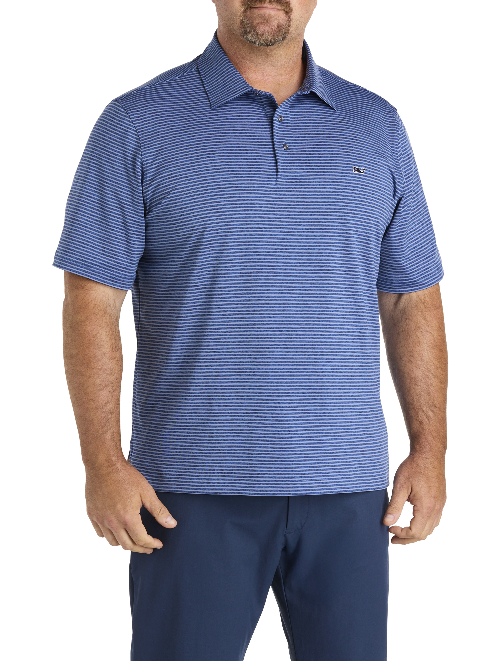 Hands-down the softest, most comfortable performance polo out there, you'll stripe it rich with this soon-to-be favorite in an updated fit from vineyard vines. Crafted with proper proportions and a flattering fit for Big and Tall guys, it's lightweight and breathable in a classic, relaxed fit, while giving you the freedom to move without restriction. The perfect shirt for travel, it's moisture-wicking, quick-drying and wrinkle-resistant for easy care. The built-in interior collar keeps you looking sharp all day long. Plus, it offers UPF 50+ protection to safeguard you from the sun's harmful rays.