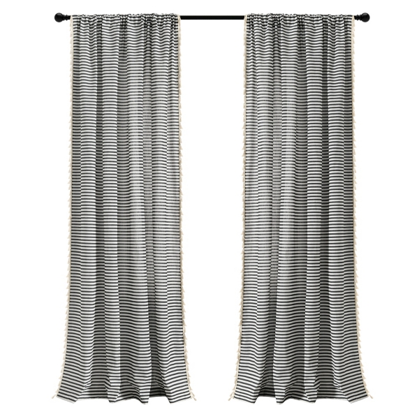 Striped Tassel Curtain Panel Set