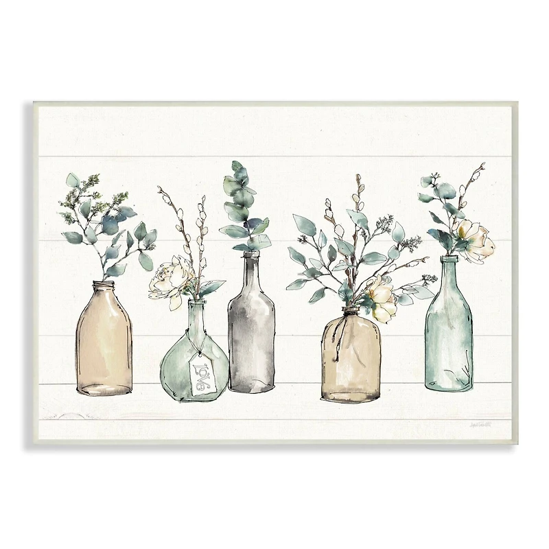 Stupell Industries Bottles & Plants Farm Wood Textured Wall Plaque