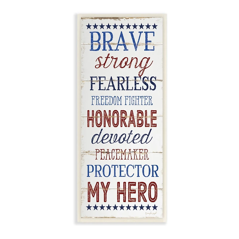Stupell Industries Brave Strong Fearless Patriotic Stars and Stripes Rustic Wood Look Sign Wall Plaque Art
