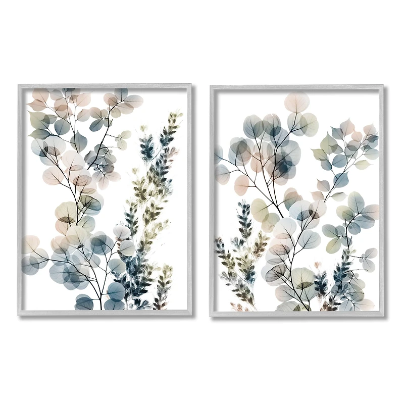 Stupell Industries Collage of Translucent Plants Blue Green Beige in Gray Frame Wall Art