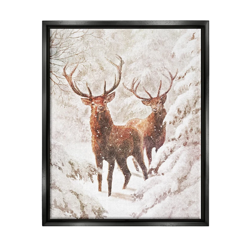 Stupell Industries Elks Snowy Forest Wildlife Black Framed Floater Canvas Wall Art in Chattanooga, TN
