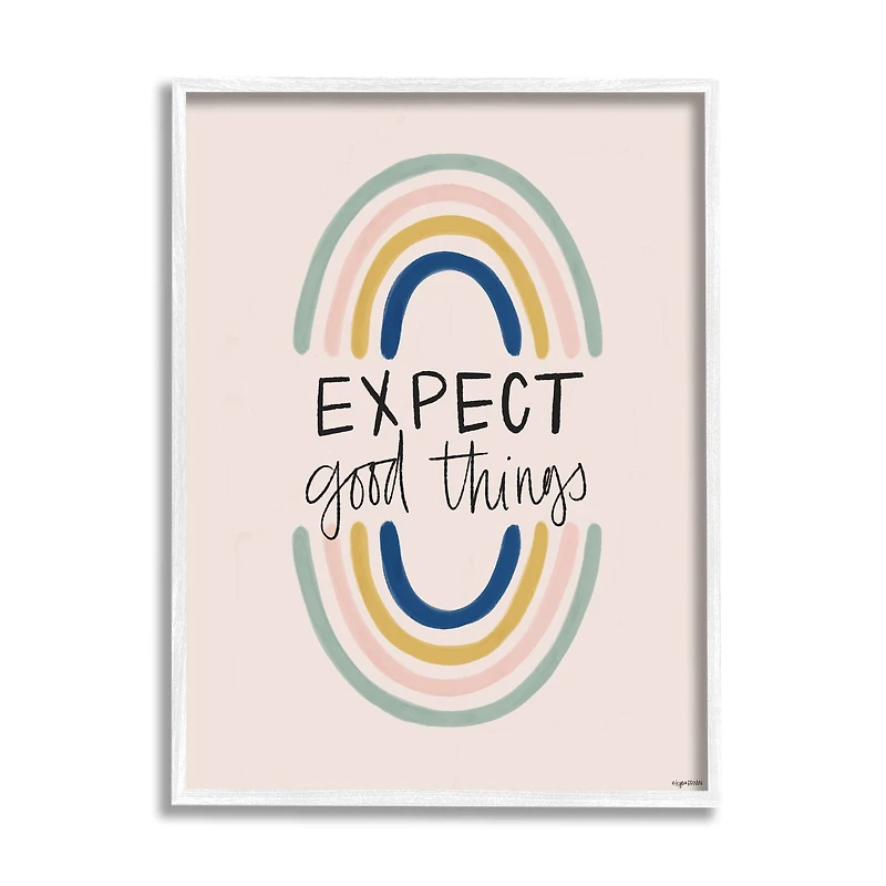 Stupell Industries Expect Good Things Phrase Double Rainbow Reflection in White Frame Wall Art
