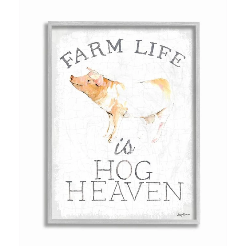 Stupell Industries Farm Life Is Hog Heaven Print with Gray Frame Wall Accent