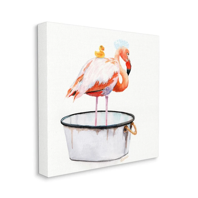 Stupell Industries Flamingo Bath Time Charming Bubble Detail Canvas Wall Art