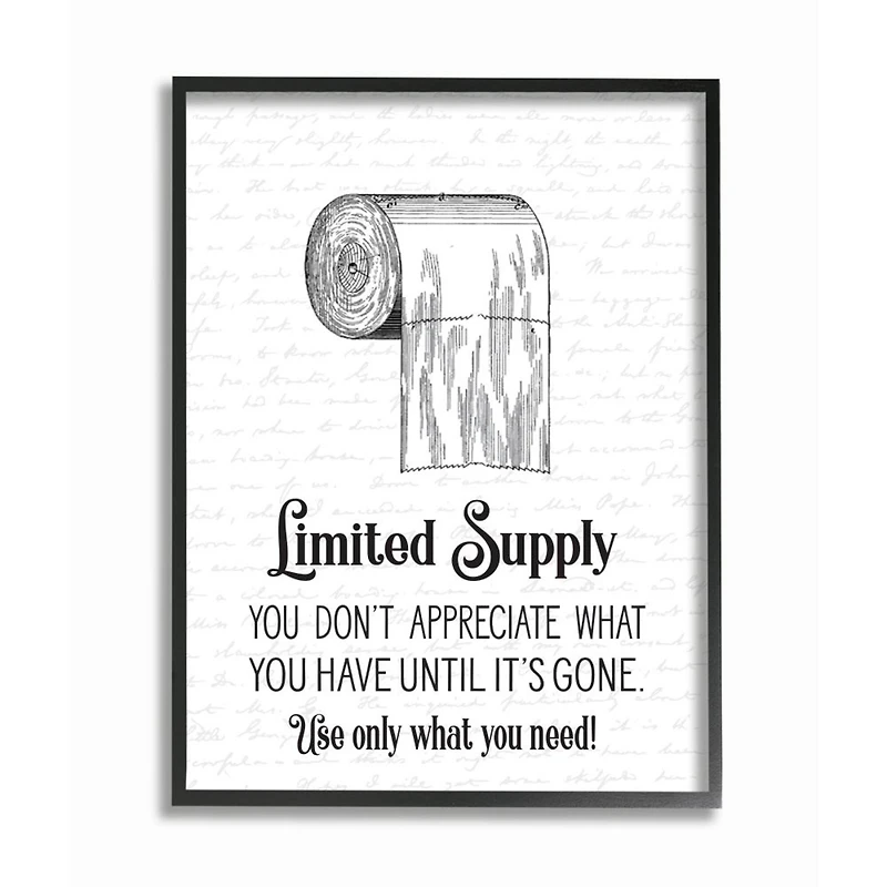 Stupell Industries Funny Limited Supply Bathroom Toilet Paper Home Quote Framed Wall Art