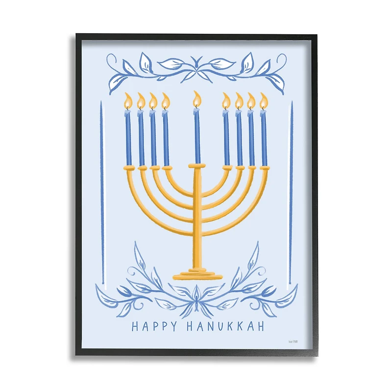 Stupell Industries Happy Hanukkah Botanical Menorah Framed Giclee Art