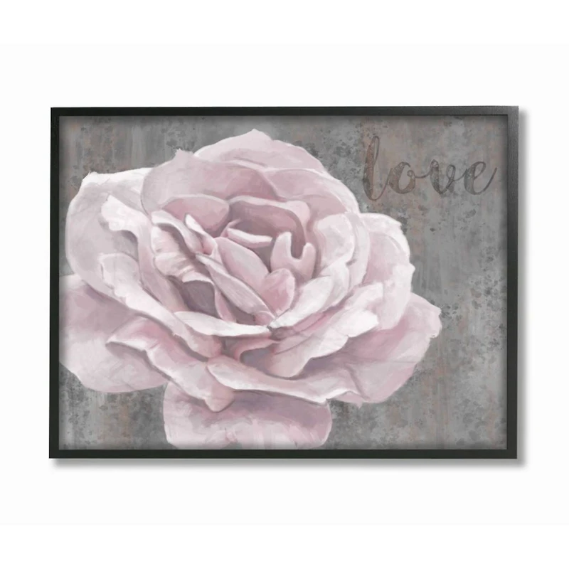 Stupell Industries Love Flower Pink Gray Texture Black Framed Wall Art