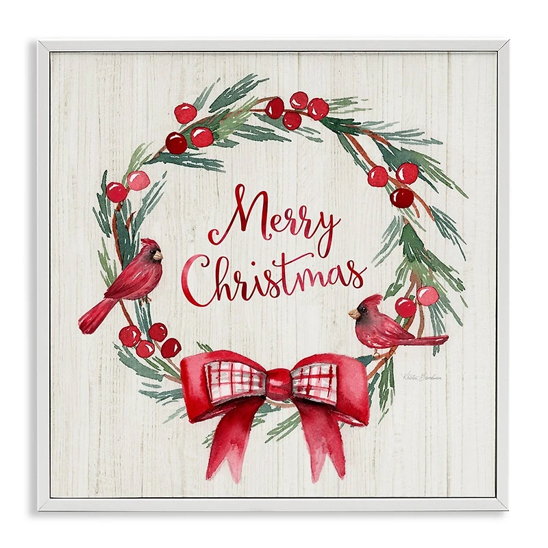 Wall art is ready to hang with hardware free hanging. No installation required. For easy set up lean or layer artwork on shelf or against wall. Our giclée prints are carefully mounted on a durable MDF backing, and then perfectly finished in a 1.5" thick woodgrain frame. Artwork relates to holiday, Christmas, winter, phrase, wreath.Details:Merry Christmas holly wreath design in white frameAvailable in multiple sizes1.5" thick woodgrain frameDurable MDF backingMade In USADesign by Kristen Brockmon