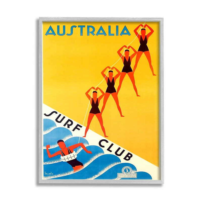 Stupell Industries Retro Pop Australian Surf Club Advertisement Yellow Blue in Frame Wall Art
