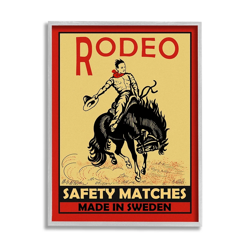 Stupell Industries Rodeo Safety Matches Cowboy Bucking Bronco Red Yellow in Gray Frame Wall ArtStupell Industries Rodeo Safety Matches Cowboy Bucking Bronco Red Yellow in Gray Frame Wall Art