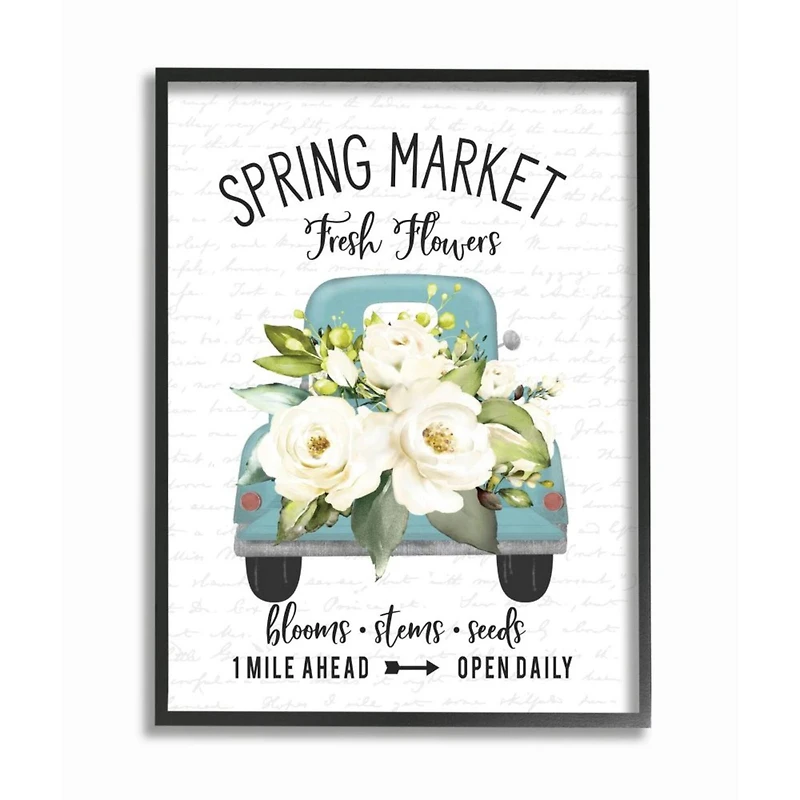Stupell Industries Spring Market Truck With Countryside Flowers Black Framed Wall Art