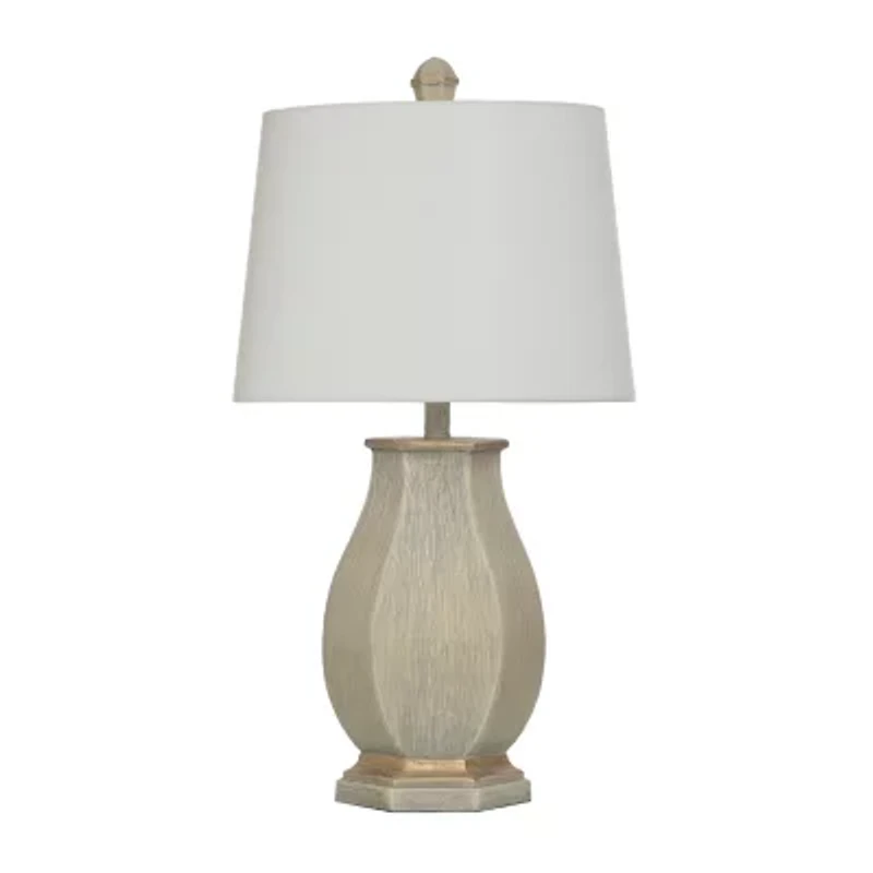 This versatile table lamp from Stylecraft puts a modern spin on a classic shape. The off-white tapered hardback shade pairs perfectly with the creamy finish on the base.