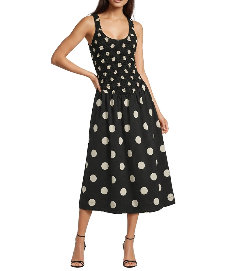 Sugarlips Demmy Polka Dot Julien Ruched Scoop Neck Sleeveless Midi Dress