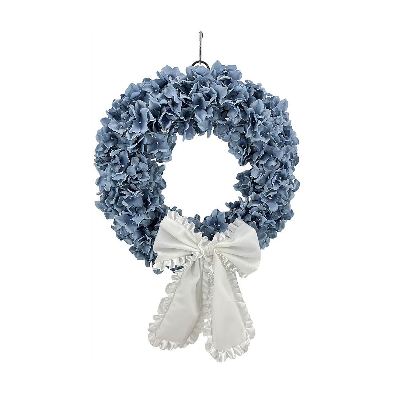 Crafted from high-quality fabric, the wreath features an abundance of lifelike hydrangea blooms in a soothing shade of soft blue. Each petal is meticulously designed to mimic the delicate texture and natural beauty of real hydrangeas, ensuring that this wreath looks stunning from every angle.