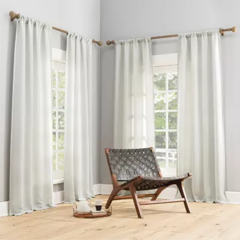 With the sun zero Dasan 4-piece woven blackout rod pocket curtain panel set, you can elevate your home decor, while enhancing privacy and blocking some unwanted light. Each featuring a simple rod pocket design for easy installation on curtain rods up to 1.5" in diameter, this set includes four solid textured woven blackout curtain panels. Blackout technology blocks out most outside light, offers outside noise reduction by up to 30%, and decreases energy lost through your windows by up to 40%. Comfort is optimized with thermal properties that help keep summer heat and winter chill out of your home. Hang panels together on a double rod to create a layered look.