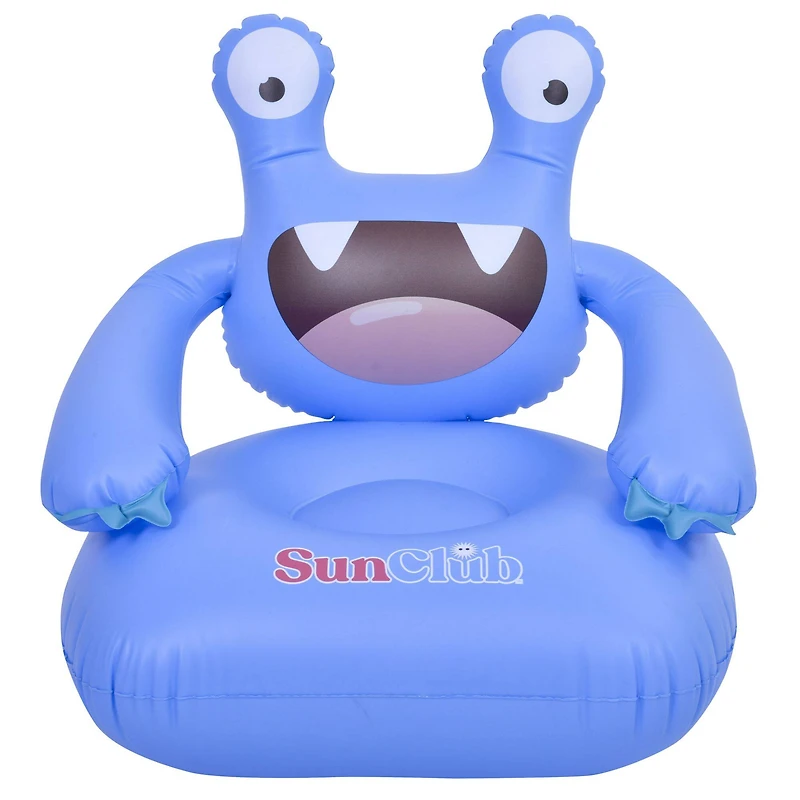 Summer is almost here and the kiddos are ready to soak up some sun. Introducing the perfect poolside companion for your little ones—this blue monster inflatable kids chair! This comfy chair features a backrest designed as a smiling monster face with two adorable teeth and big friendly eyes. The arms of the chair are cleverly crafted to resemble the arms of a monster providing comfortable armrests for your child. Made from durable high-quality materials this chair is sure to be a hit with your kids and will provide hours of fun and relaxation by the pool.Details:Blue monster design24" x 24" x 24" inflated chair sizeMonster face and arms for the back and armrestFirm and durable seatingEasy to inflate and deflateContains one PVC repair patchVinylShips flat and does not come inflatedRecommended for ages 3 through 10Note: This is not a lifesaving device. Always keep children in sight within quick and easy reach when they are in the water.
