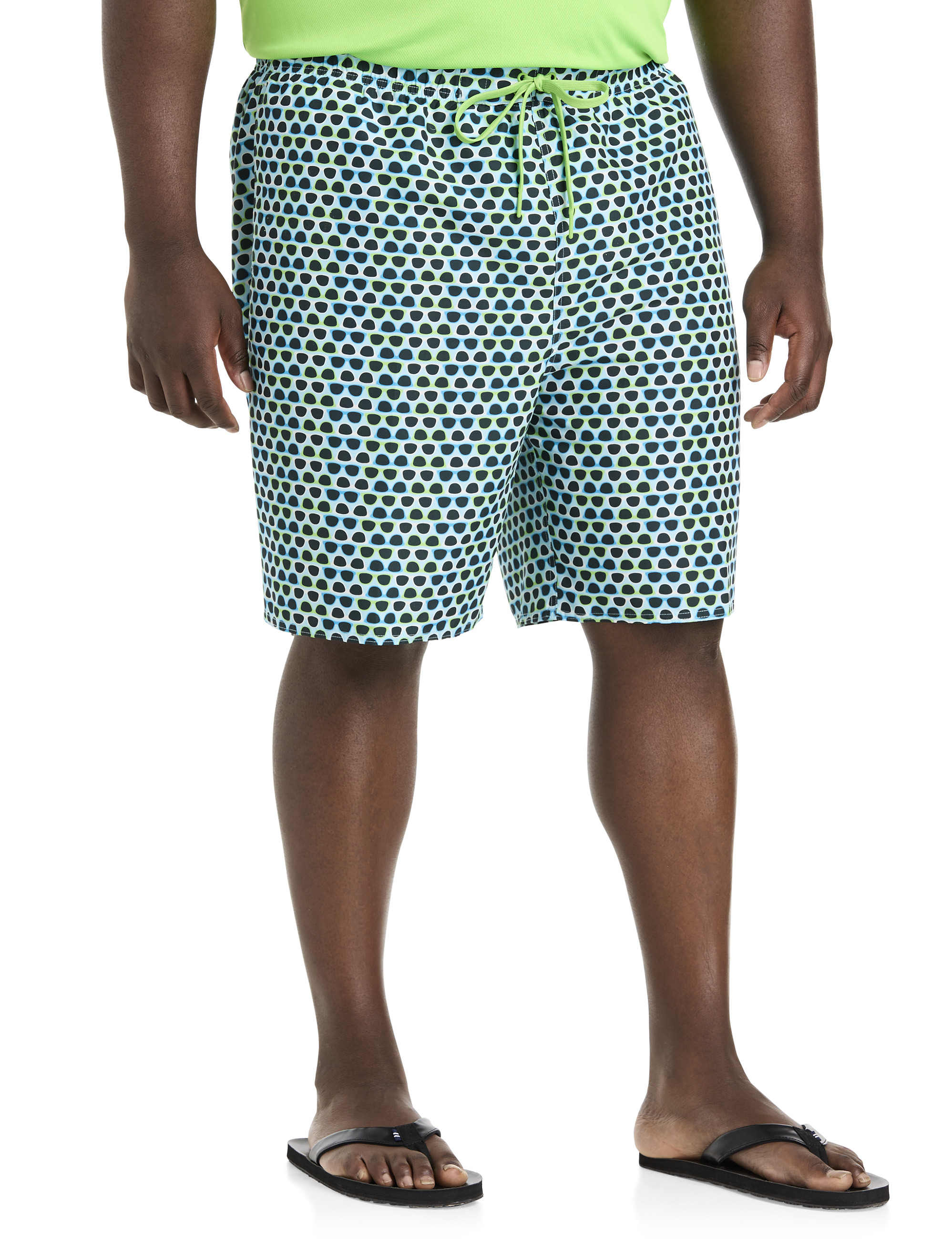 Talk about being made in the shade; dive right into the fun with these swim trunks. They're a versatile style that easily pairs with your favorite tee or swim shirt. Designed at DXL with proper proportions for Big and Tall guys, they're crafted in lightweight and breathable recycled polyester for a smaller ecological footprint and packed with performance features like UPF sun protection to safeguard you from harmful UV rays. They're quick drying so you can easily transition from the beach to the boardwalk and they offer an elasticized waistband for a comfortable, customizable fit.