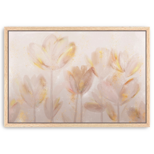 Featuring soft pink petals brushed with gold, this Sunkissed Poppies Framed Canvas Art Print will embellish your walls with a delicate and graceful beauty! Framed print measures 38L x 1.75W x 26H in. Giclee printed on stretched canvas Wood frame around wrapped canvas Oak frame finish Poppy subjects Hues of pink, gold, and gray Weight: 12.68 lbs. Hangs from back-mounted hardware Care: Dust with a soft, dry cloth. Avoid exposure to heat, sunlight, and moisture This item is available at Kirklands.com only, not available in stores. Please note: this item cannot be shipped to APO/FPO addresses.