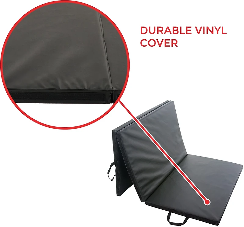 No matter your preferred routine, the Sunny Health & Fitness 3' x 6' x 2" Folding Gym Mat offers plenty of comfort to help you through any exercise. Made of durable, vinyl-coated foam, this mat is ideal for a range of workout styles, and it folds easily and has attached carry handles for on-the-go workouts.