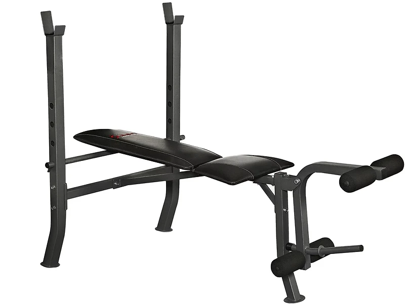 Work out with versatility with the Sunny Health & Fitness Adjustable Weight Bench. The barbell holder set has a weight capacity of 100 pounds and safely holds weights while you exercise. The leg developer has foam rollers for comfort and a weight capacity of 50 pounds. The bench features a foam-padded back rest with 3 adjustable positions and can accommodate lifters of up to 350 pounds including weights.