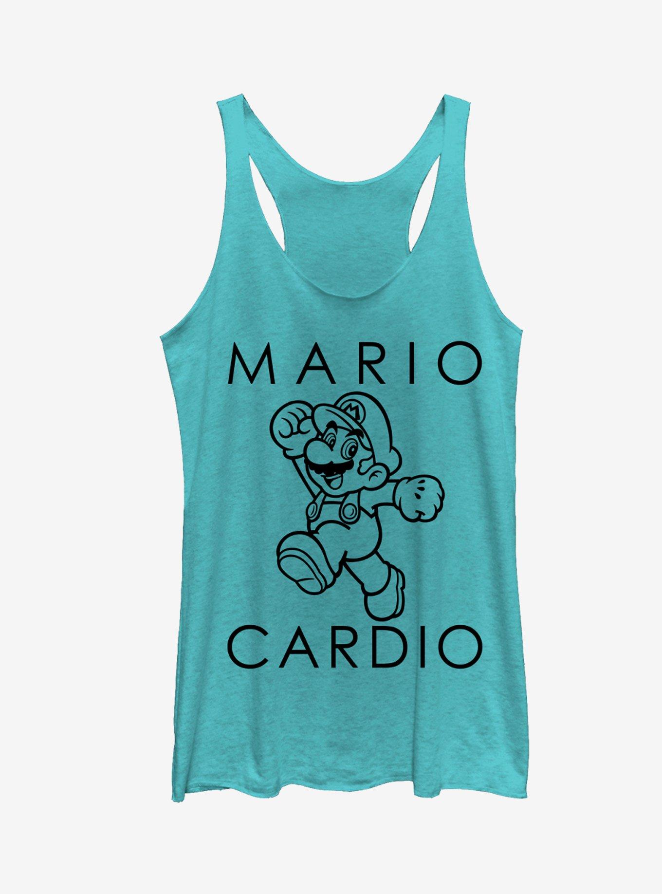 The Super Mario Cardio racer-back tank is all about jumping, butt bouncing, and running: all your favorite forms of cardio! An outline print on the front of this cute Nintendo tank reads "Mario Cardio" next to Mario jumping with a smile on his face. Let's go!