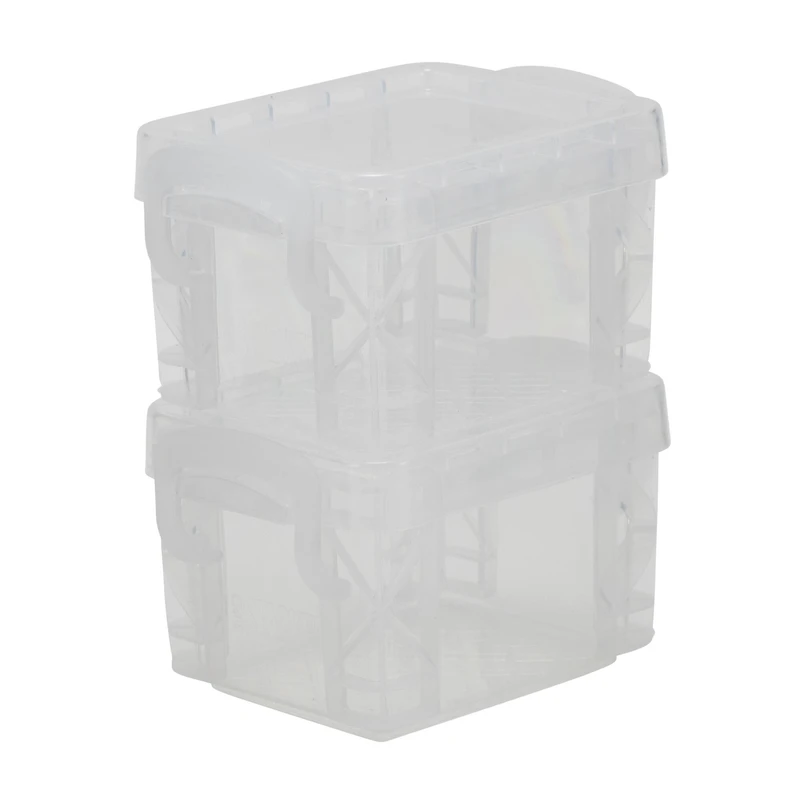 These Super Stacker Pixie Boxes are perfect for organizing small craft supplies, office supplies, and more. Add these storage boxes to your office for a clutter-free desk.Details:Clear2.375" x 3.25" x 2.125" (6cm x 8.3cm x 5.4cm)2 boxesStackablePolypropylene