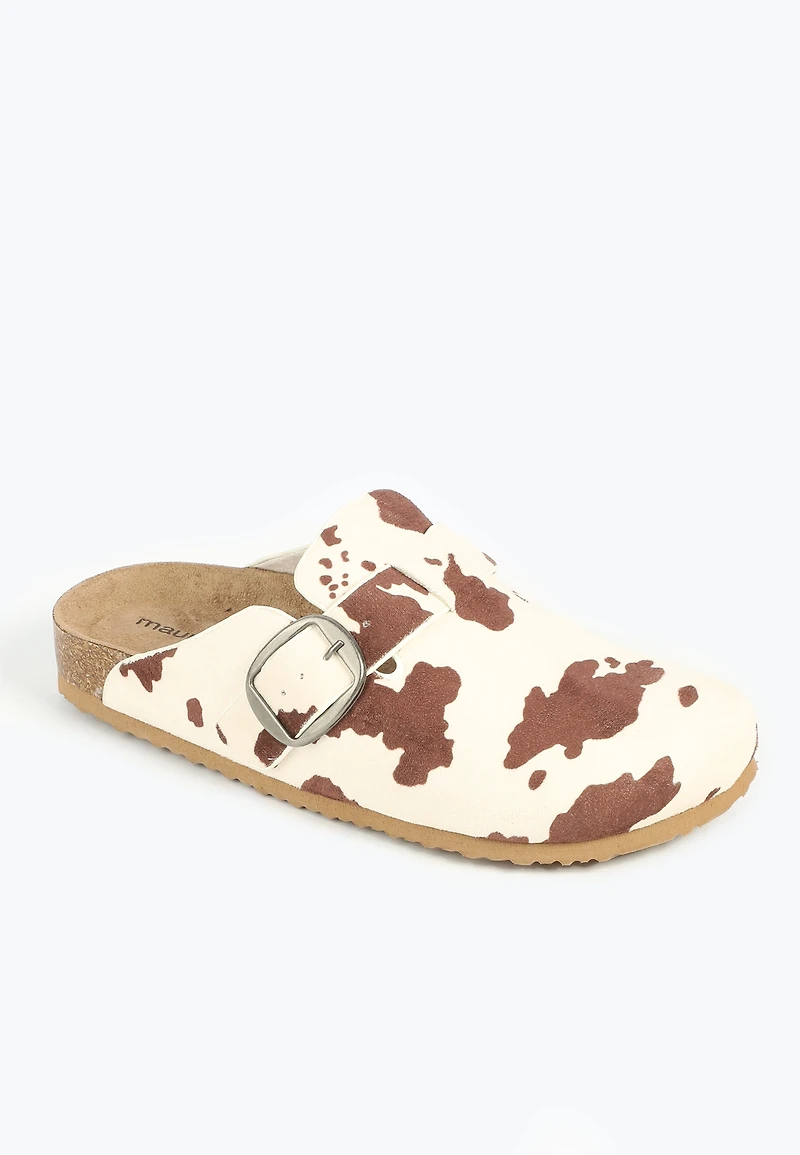SuperCush Chloe Cowprint Closed Toe Footbed Clog