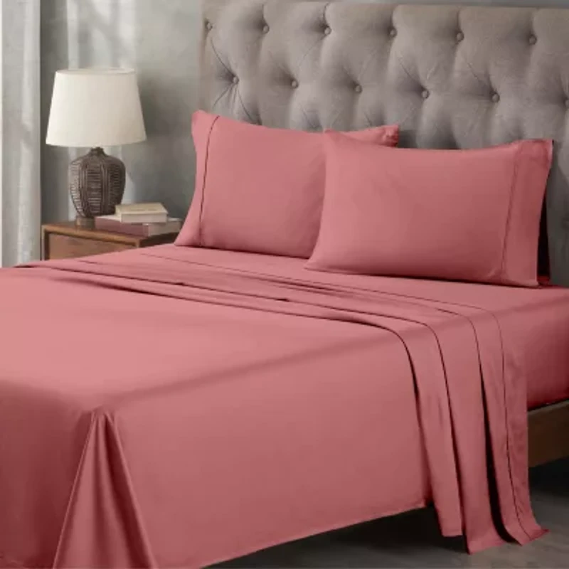 Enjoy breathable, everyday luxury with the Egyptian Cotton 400 Thread Count Sheet Set. Made from a soft blend of Egyptian and long-staple combed cotton, this silky sateen-woven set offers a smooth feel, subtle sheen, and lasting durability. The deep pocket fitted sheet fits mattresses up to 18" deep for a perfect fit. OEKO-TEX certified and machine washable for easy care. Includes: 1 flat sheet, 1 fitted sheet, 2 pillowcases. Material: 50% Egyptian Cotton, 50% Long-Staple Combed Cotton. Thread Count: 400. Soft. Breathable. Timeless.