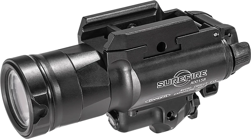 Customize your pistol with the SureFire X400UH-A-GN Ultra Masterfire Light. The aluminum construction affords durability, while IPX4 water resistance defends against the elements. The LED bulb produces up to 1,000 lumens/5.0 mW for 1.25 - 24 hours.