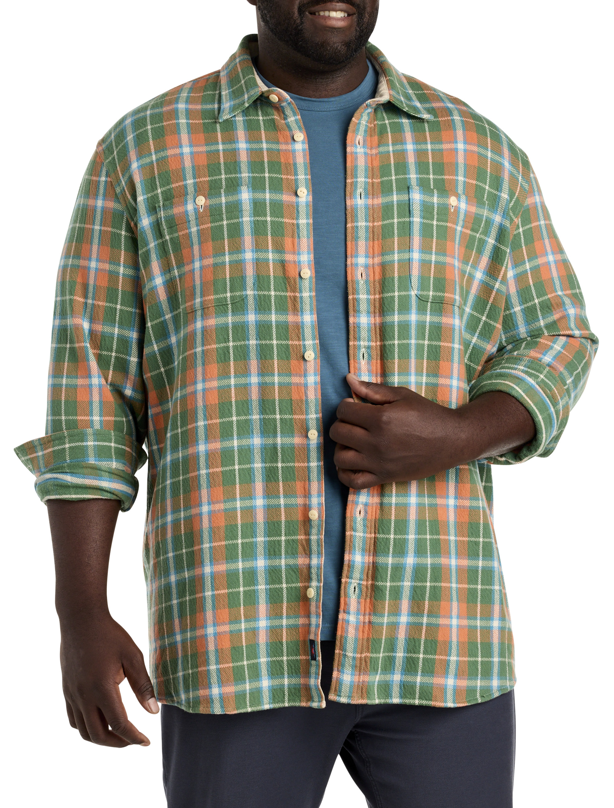 Crafted from durable 100% organic cotton, this throw-on, goes-with-anything Surf Flannel shirt jacket from Faherty is the transitional layer you didn't know you needed. Super soft, with a textured and chunky weave, it's the epitome of easy-wearing, lived-in style whether you're on dawn patrol or tailgating at dusk. Designed with precise proportions and an ideal fit for Big and Tall guys, it allows for the freedom to move without restriction and is sure to be the perfect top layer for guys on the go.