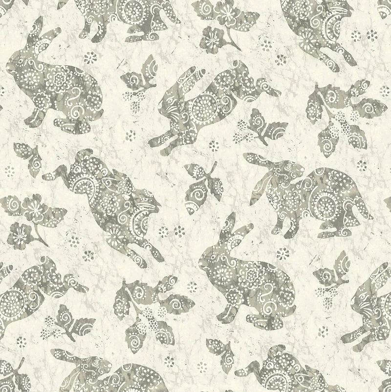 Bringing pure joy and happiness, the Surface Style Bunny Hop peel and stick wallpaper featuring hopping batik rabbits is right at home in a nursery, child's bedroom, or a country, rustic-themed kitchen. The Bunny Hop peel and stick wallpaper will instantly transform any room in your home with its stylish rich color and flair, offering a fresh new alternative to decorating that is fast, fun and mess-free.