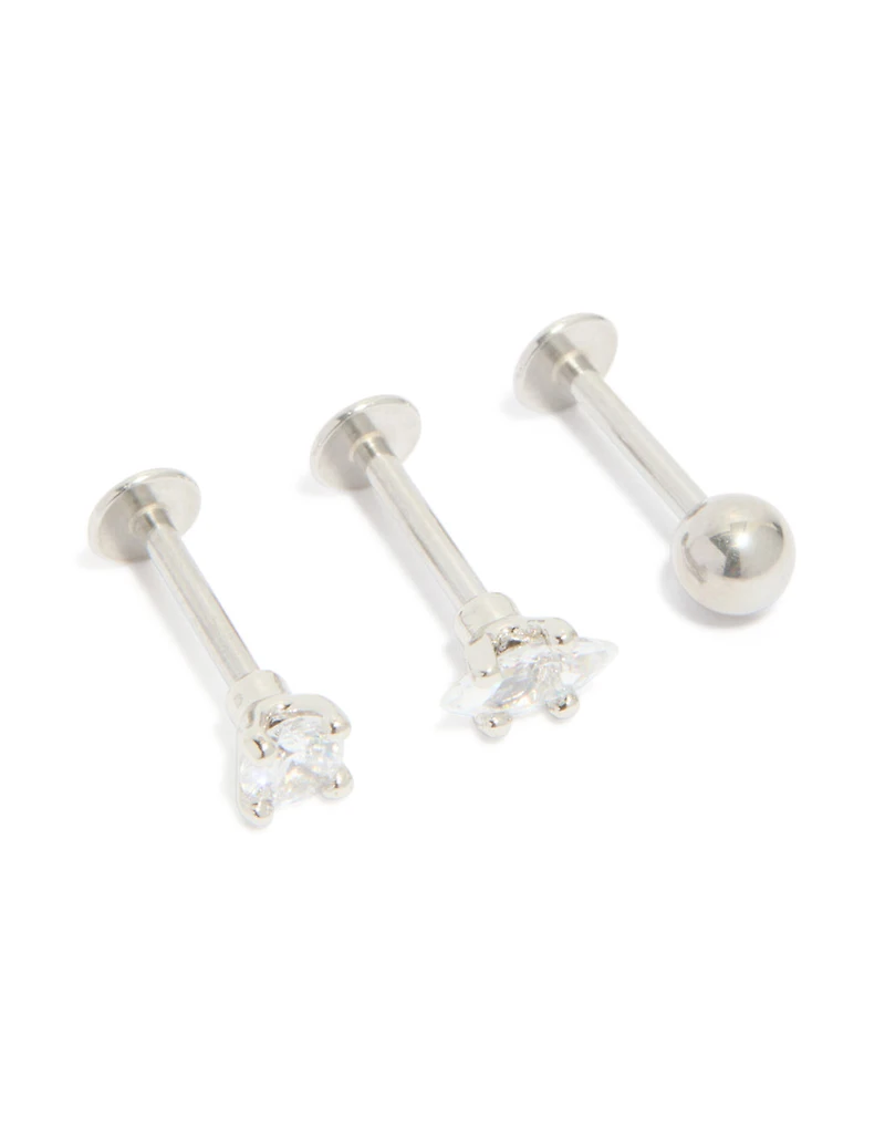 Surgical Steel Cubic Zirconia Marquise & Round Flat Back Studs 3-Pack