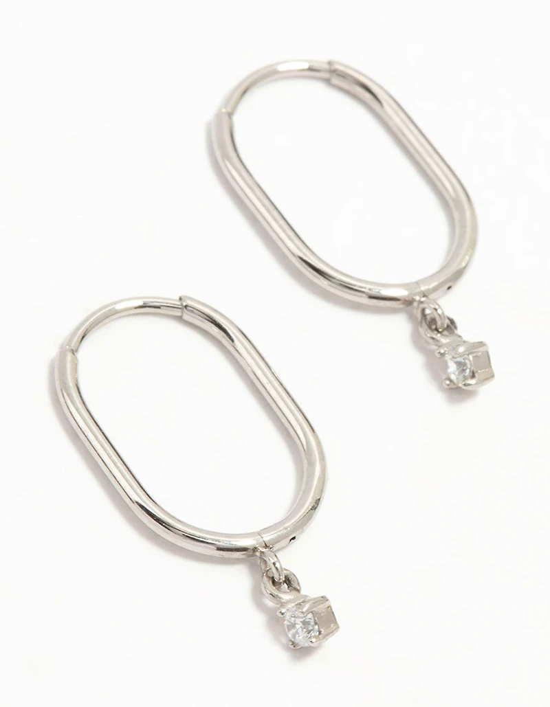 Surgical Steel Rectangular Sleeper Cubic Zirconia Charm Earrings in Chattanooga, TN