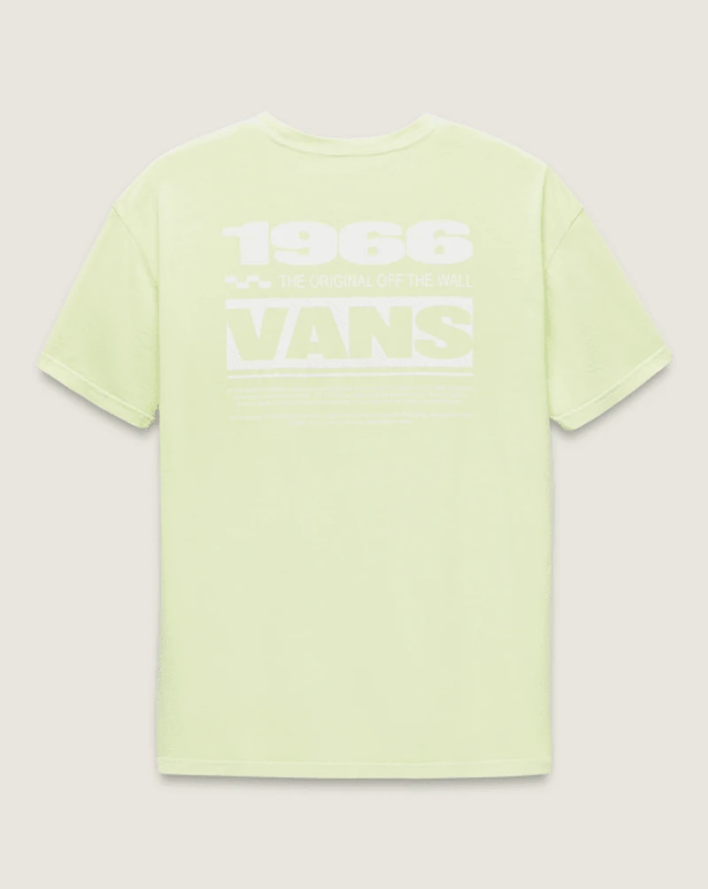 Mellow out in the Suspension T-Shirt, an oversized heavy cotton jersey short sleeve crew neck T-shirt. With overdyed fabric for a more vibrant and textured color, this T-shirt features a subtle Vans® logo graphic on the front, with a larger graphic with Vans historical details on the back.