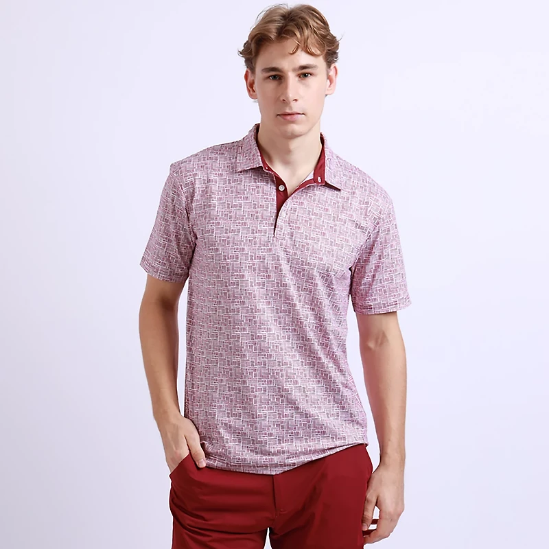 Look your best when you wear the Swannies Men's Viva Polo Shirt. The bamboo charcoal polyester blend provides a comfortable feel, while the moisture wicking technology helps keep you cool and dry. The 4-way stretch technology promotes mobility, and the allover print offers a stylish touch.