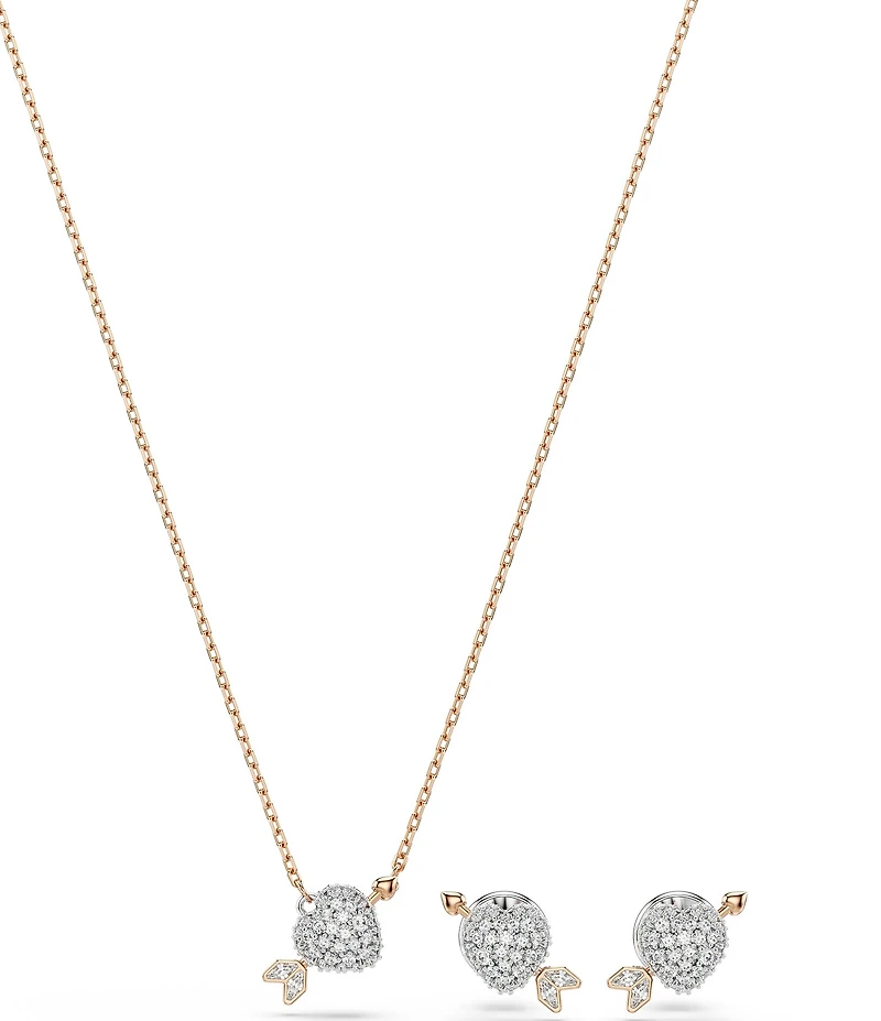 Swarovski Idyllia Mixed Cut Heart with Arrow Short Pendant Necklace & Stud Earring Set