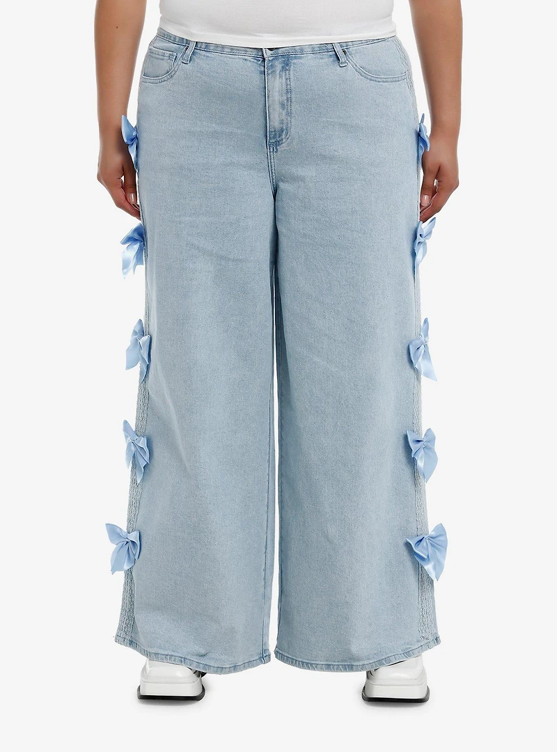 Sweet Society Light Indigo Blue Bow Wide Leg Jeans Plus Size