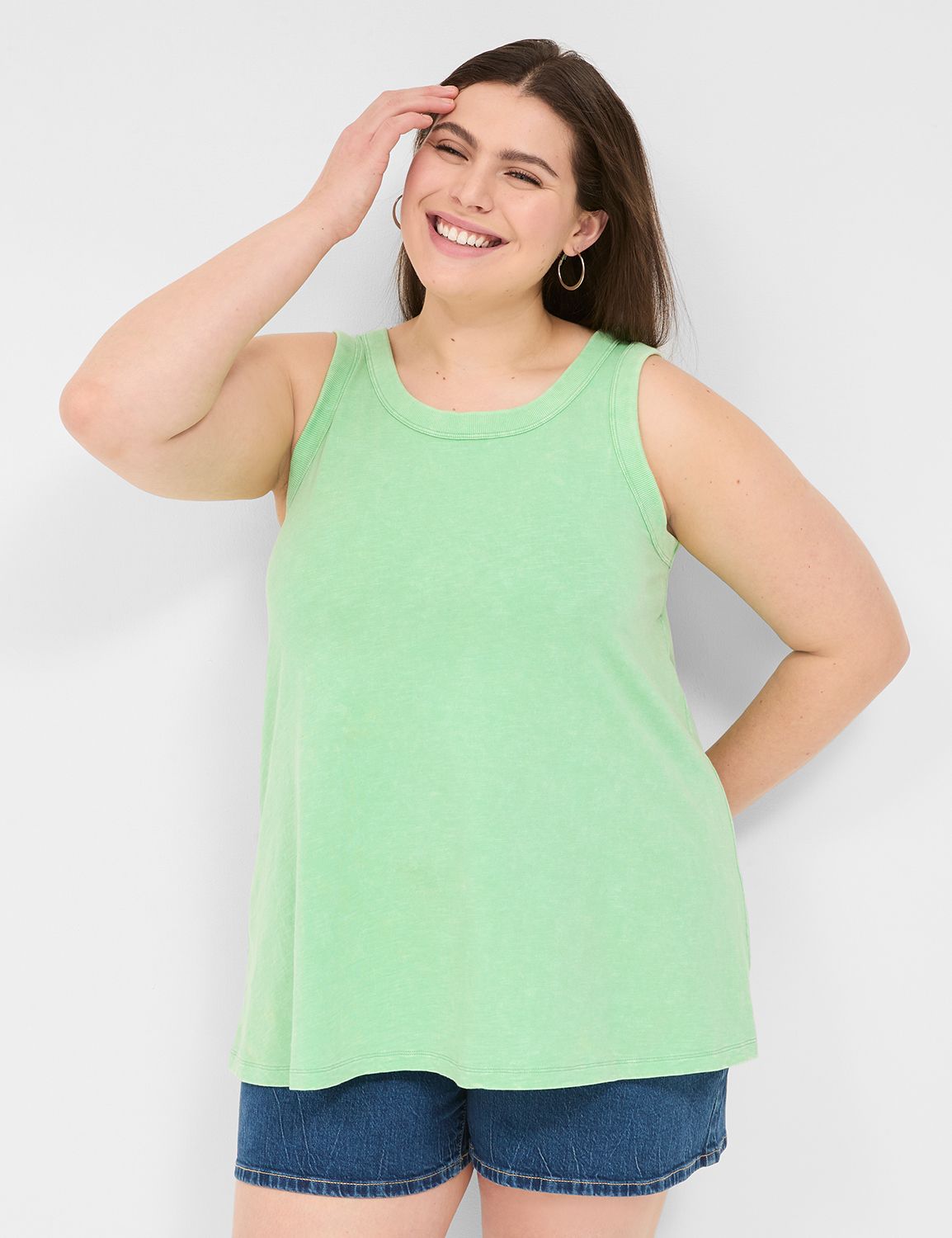 Available in Plus Size Designed in the swing fit we're known for, and a cool washed detail, this tunic tank is the top you'll wear on repeat. With jeans, leggings, a cardi, everything. Crew neck. Sleeveless. Ribbed trim. Soft jersey knit. Longer length is perfect for added coverage with skinny jeans and leggings.SWING: Our just-right full swing perfectly flatters your curves.SPECIAL NOTE: Unique wash coloration varies on each garment (making it one of a kind!) and may not appear exactly as pictured. Item Number #406428Front Body Length From Shoulder: 32" (On Size 18) Imported Plus Size Top ". Plus Size Swing Washed Tunic Tank, in Sage Green, 14/16, Women's, Lane Bryant