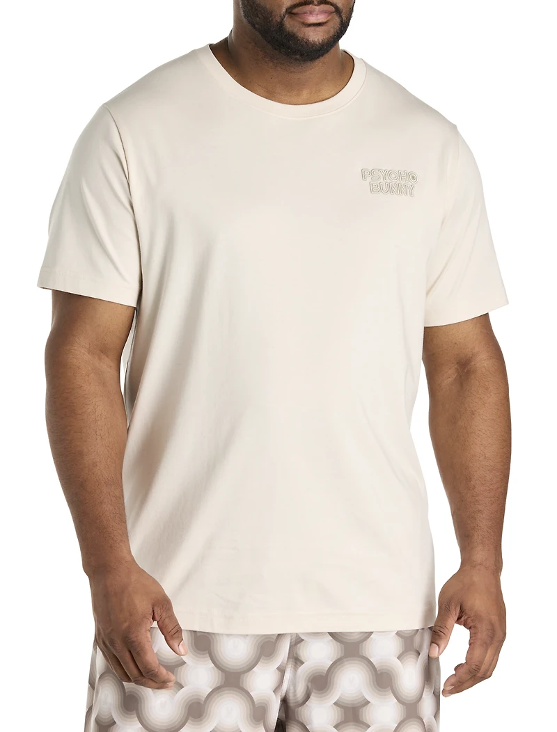 Show that bunny love for your favorite brand. Steeped in both style and quality, this Psycho Bunny graphic T-shirt features the signature logo at the left chest and a striking Bunny logo print at the back. Crafted in ultrasoft Peruvian Pima cotton with a relaxed fit, it features taped shoulder seams to ensure it never loses its perfect shape. It's designed with ideal proportions for Big + Tall guys and is set to stand apart as a favorite in your collection whether worn as a statement tee or layered under a zip-front hoodie.