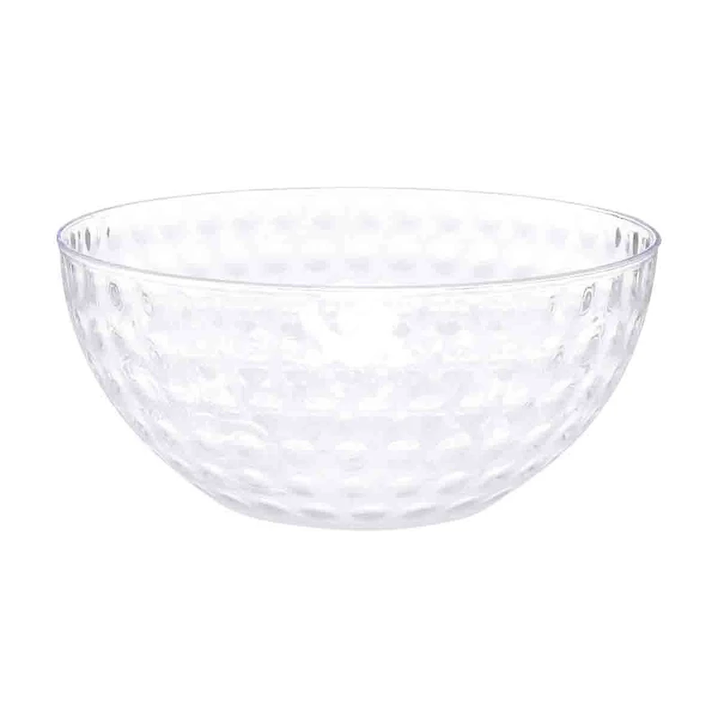 Serve colorful sides, salads, or bread with the clear and tasteful dimple bowl. The perfect solution for outdoor dining and busy businesses that need a quick cleanup process without sacrificing elegance. The heavyweight construction of the bowl can hold the weight of ice cream or potato salad without fear of leakage or spills.
