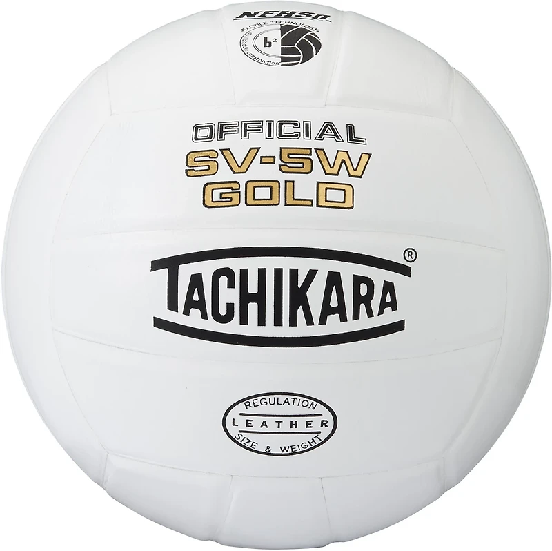 Practice your spikes and serves with a Tachikara Premium Leather Dual Bladder NFHS Approved Indoor Volleyball. This ball features a premium leather cover with dual butyl bladders for superior ball control, responsiveness and durability.