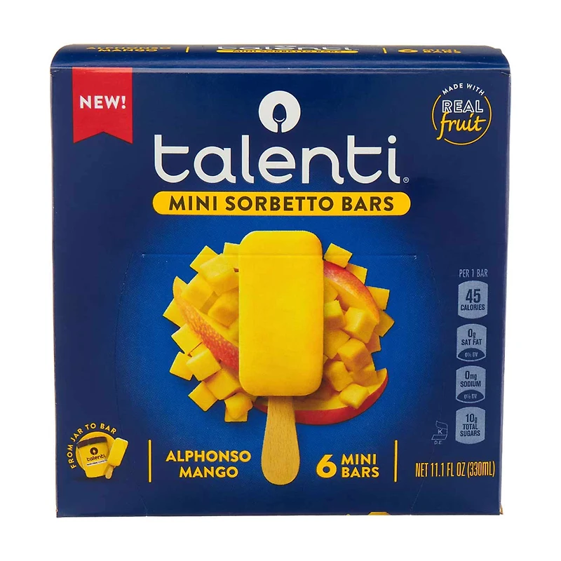 Experience the joy of Talenti Mini Sorbetto Bars in Alphonso Mango, and let your taste buds embark on a tropical journey with every delightful bite.