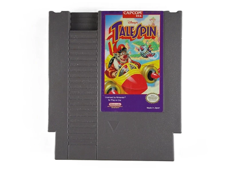 TaleSpin for NES transforms Disney’s beloved cartoon into a charming side‑scrolling shooter starring Baloo and the Sea Duck. Fly across exotic jungles, pirate‑infested skies, and industrial fortresses as you deliver cargo and battle Don Karnage’s air fleet. With its unique plane‑flip mechanic, colorful visuals, and upbeat Disney personality, TaleSpin offers a lighthearted but challenging adventure that captures the spirit of the show.