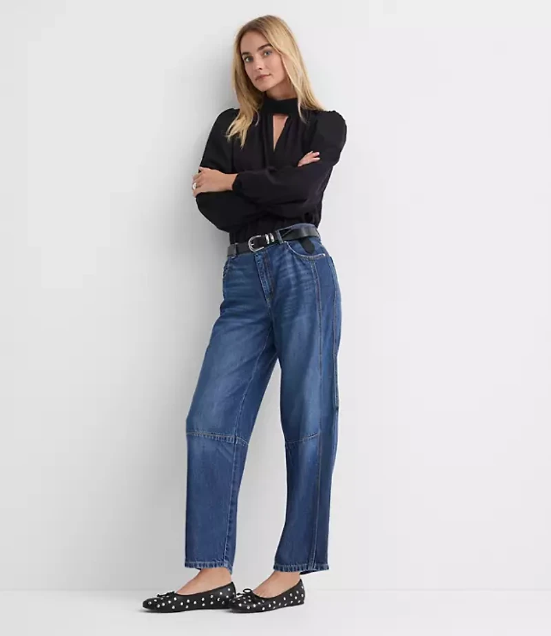 Pants Details: Front zip with button closure. Belt loops Five pocket styling., Leg Shape: Barrel - relaxed up top, easing into a looser lower thigh and high knee with a slightly tapered leg opening, Rise: Sits at natural waist, 11 1/2"rise, Imported:, Fit: A fresh and flattering tapered fit, in authentic low stretch denim with added extra softness, Length: Ankle length, 31 1/4"inseam, Fabrication: 57% Cotton 43 Lyocell, Garment Care: Machine Washable Loft Tall High Rise Barrel Jeans in Dark Wash Size 27 Women's by Loft Size Regular - 27 Dark Wash Women's Regular, Dark Barrel Pants 57% Cotton 43% Lyocell Machine Washable