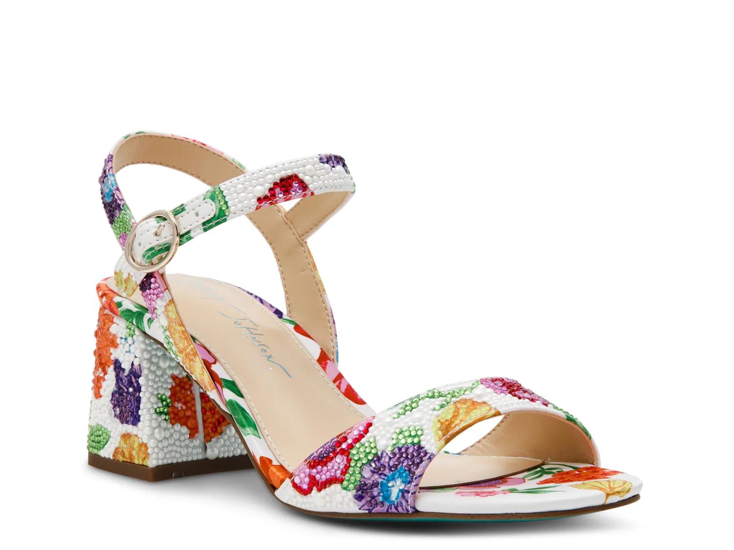Step into a garden of style with this vibrant Tamy sandal from Betsey Johnson. Adorned with embroidered florals, this sandal exudes a fresh, feminine charm. The sturdy heel provides just the right balance of height, while the delicate ankle strap ensures a secure fit, making it ideal for brunches, or adding a pop of elegance to any outfit.
