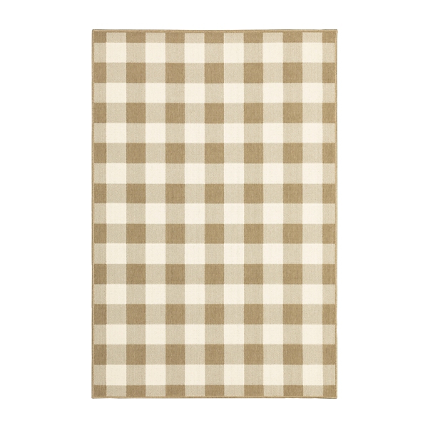 Tan Buffalo Check Outdoor Area Rug, 5x7
